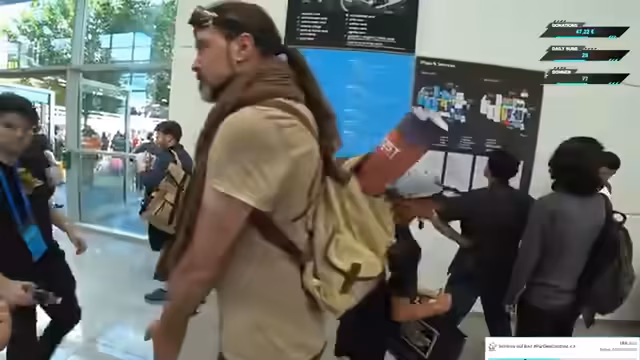 05:16:37Der Stream endet mit den Vorbereitungen für den Weg aus der Halle. Ein wichtiges Ziel ist, ein Mitbringsel für einen Kollegen zu besorgen. Nach kurzer Suche wird eine Zorro-Figur für 22 Euro gefunden, die den Geschmack des Empfängers treffen soll. Danach wird der Weg Richtung Halle 5 und anschließend zur Spotify-Party fortgesetzt. Der Streamer dankt der Community für den Support im Zweitkanal und verabschiedet sich für den Tag, wobei der weitere Verlauf des Abends geplant ist.
