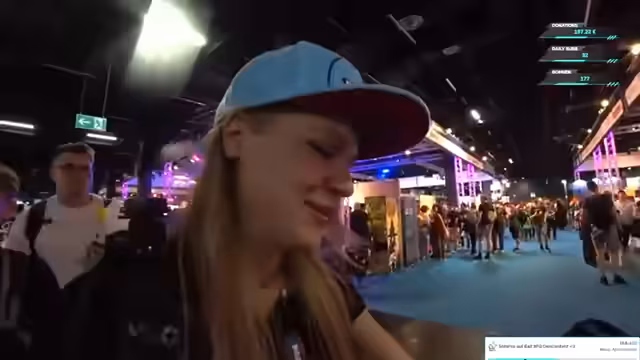00:00:00Der Stream beginnt mit der Ankunft der Streamerin auf der Gamescom. Sie berichtet von einer anfänglichen Unordnung, da sie ihre Box vergessen hat, die sich wahrscheinlich im Auto oder zu Hause befindet. Trotz dieser technischen Hürde ist sie froh, da zu sein und will den Stream gestartet haben. Sie erwähnt auch, dass sie heute Abend noch Termine hat und die Messe nur für einen Tag besuchen wird, was auf einen vollen Tag und Abend hindeutet.