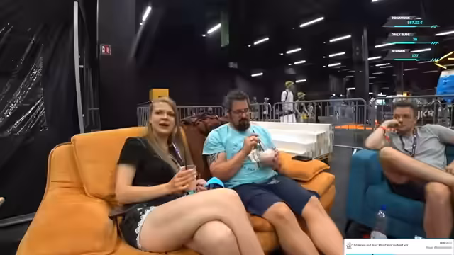 00:56:25Während des Streams treten technische Schwierigkeiten auf, insbesondere eine starke Musik in der Lounge, die den Stream belastet. Die Streamerin überlegt, den Ton für eine Weile stummzuschalten. Zudem gibt sie einen detaillierten Plan für den Abend vor: Sie wird bis 17 Uhr auf der Messe bleiben, dann zur Spotify-Party, sich umziehen und später zur Branchenparty gehen. Auf beiden Partys wird sie nicht streamen dürfen, was sie den Zuschauern mitteilt.