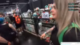 01:34:46Zum Ende des Tagesabschnitts zeigt die Streamerne einen Blick auf den Netflix-Stand mit den Serien Wednesday und Stranger Things sowie auf den Lego-Stand. Sie ist beeindruckt von den aufwendigen Aufbauten und erkennt, dass der Chat besonders an bestimmten Ständen wie Netflix und Lego interessiert ist. Der Fokus liegt auf der visuellen Präsentation für das Publikum, während die Streamerin selbst über den Kauf von Merch nachdenkt, insbesondere da sie selbst für einen Shop Merch produziert.