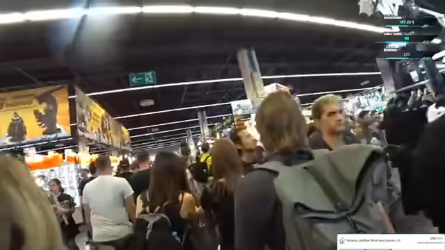 05:38:24Bei der Suche durch die Halle gibt es mehrere zufällige Treffen mit Bekannten und Followern, darunter Katrin und Shanti. Der Streamer kauft eine Zorro-Figur für Mike und erwähnt, dass er schon 22 Euro dafür bezahlt hat. Es wird über private Pläne gesprochen, wie die Bronchienparty und der Aufenthalt in der Unterkunft, was den Mix aus öffentlichem Stream und privatem Ausflug zeigt.