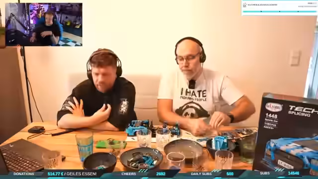 04:27:36Der Stream dreht sich hauptsächlich um den Bau eines aus Mini-Lego-Bausteinen bestehenden Autos, das als Zappaton über vier Tage aufgebaut wird. Udo und Moritz arbeiten gemeinsam daran, während der Streamer zuschaut und kommentiert. Es wird erwähnt, dass sie auf Weltrekurs seien, ob dies jedoch tatsächlich zutrifft, bleibt unklar. Der Bau wird als aufwendig und zeitaufwändig beschrieben, und es gibt Diskussionen über mögliche Upgrades, wie zum Beispiel einen Motor, um das_auto als RC-Auto nutzen zu können.