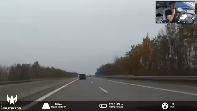 05:09:42Während der Fahrt teilt der Streamer aktuelle Anekdoten und Erlebnisse. Er berichtet von gesundheitlichen Problemen nach dem Verzehr von "gesunden" Bowls und erwähnt einen signierten Transporter, den er sieht. Er versucht zudem, an einer geschlossenen Raststätte mit Pizza-Verkauf vorbeizufahren, um den Laden zu zeigen, und äußert Bedenken über die Zukunft kleinerer Ladesäulen und Tankstellen, die möglicherweise nicht überleben.
