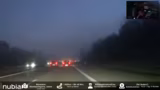07:00:54Während der Fahrt durch eine neblige, fast dämonische Landschaft bei einsetzender Dunkelheit, beschreibt der Streamer die Stimmung als spukhaft und an einen Horrorfilm erinnernd. Die Gegend wird als 'Düsterwald' bezeichnet und er macht sich Sorgen, falls etwas passiert, da er alleine unterwegs ist. Die Chatinteraktion hilft, die gespenstische Atmosphäre aufzulockern.