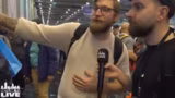 00:53:25Nach einer kurzen Pause zur Akku- und Kamerawechsel verbindet sich der Streamer mit seinem Sprachstudio. So können er und sein Co-Moderator Interviews direkt mit Messebesuchern führen. Das Format ermöglicht es, zufällig interessante Personen anzusprechen und ihre Geschichten zu erfragen. Einem Kostümträger wird angeboten, auf einer eigenen Joker-Karte für ein Spiel abgebildet zu werden. Die Erkundungstour der Messehallen geht weiter, wobei der Fokus auf persönlichen Begegnungen und spontanen Gesprächen liegt. Das Ziel ist es, die Vielfalt und das bunte Treiben der Messe für die Zuschauer erlebbar zu machen und Einblicke in die Community zu gewinnen.