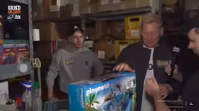05:00:57Der Stream beginnt mit einer spontanen Interaktion bei der Ankunft eines Gastes, wobei ein Bananenkarton als Gesprächsgrund dient. Anschließend tauchen verschiedene Produkte auf, wie teure LED-Geräte von Gove und Babyborn-Puppen aus der Fernsehwerbung, die Kindheitserinnerungen wecken. Des Weiteren werden Mystery Packs mit Bitcoins und ein Pokershop als Kaufquelle erwähnt. Im weiteren Verlauf steht Playmobil im Fokus, insbesondere eine Seaworld-Edition und ein Pool-Set, wobei das Potenzial für eine Poker-Challenge mit Playmobil-Figuren diskutiert wird.
