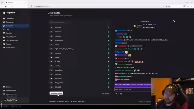 01:30:18Der Streamer verlost zwei Tickets für ein Sido-Konzert in Gräfen einigen am Freitagabend. Zuerst versucht er, den Fosser-Bot für das Giveaway einzurichten, was aufgrund fehlender Verknüpfung nicht funktioniert. Nachdem er erfolglos versucht, den Bot zu konfigurieren, entscheidet er sich für den Einsatz des alternativen Bots, den er spöttisch als 'Scam-Night-Bot' bezeichnet. Der Gewinner wird aus den Followern per Zufall ermittelt, wobei Twitch-Abonnenten eine doppelt so hohe Chance haben.