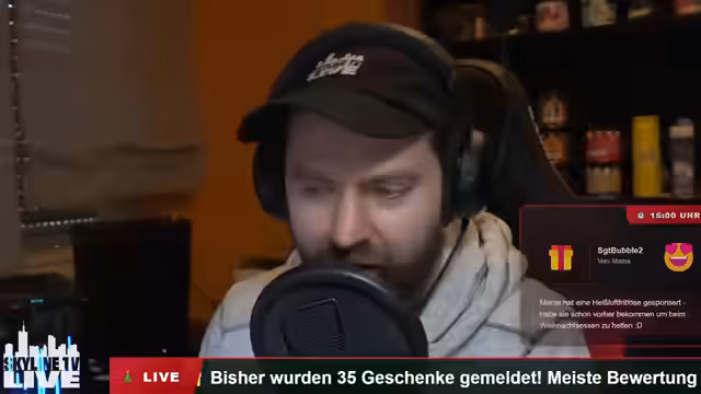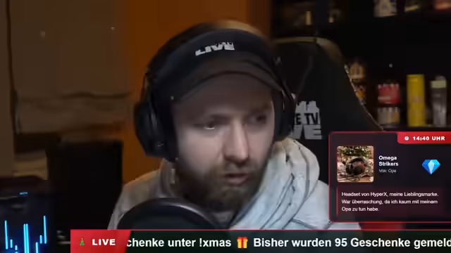 00:15:00Der Stream beginnt mit technischen Vorbereitungen und der Ankündigung einer interaktiven Geschenke-Aktion. Zuschauer werden aufgerufen, Fotos ihrer Weihnachtsgeschenke über eine eigens dafür eingerichtete Webseite einzureichen. Diese Einsendungen werden im Stream live eingeblendet und mit einem speziellen Soundeffekt versehen, der nur bei neuen Einsendungen ertönt. Ziel ist es, eine gemeinschaftliche Bescherungsstimmung zu schaffen und sowohl positive als auch negative Reaktionen auf Geschenke zu teilen.