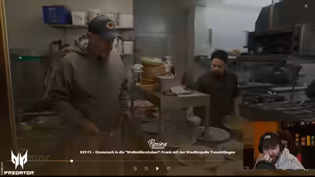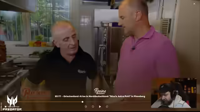 05:39:37Rumatra taucht live im Stream auf, was eine Überraschung für den anwesenden Auszubildenden darstellt, der als großer Fan gilt. Die unerwartete Präsenz des Streamers löst Begeisterung aus und unterstreicht die Marketingstrategie, junge Zielgruppen direkt anzusprechen. Die Interaktion wird als gelungenes Beispiel für die Symbiose zwischen Restaurant-Werbung und Social-Media-Influencern gewertet.