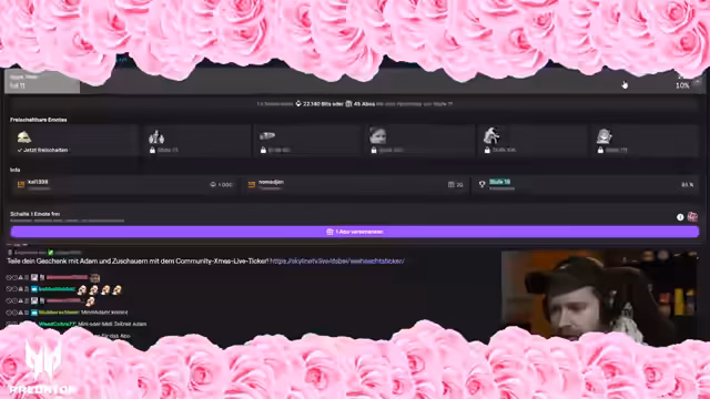 03:03:47Es finden Reflexionen darüber statt, wie man vor der Kamera trotzdem die eigenen Dinge durchziehen kann und welche Anspannung das mit sich bringt. Besonders der Einsatz des Teams, das den Weihnachtsmarkt über Nacht aufgebaut hat, wird gewürdigt. Im Chat des Wichtel-Events werden Geschenke gehaset, was im Vergleich zum Vorjahr ein anderes Bild zeigt. Captain Baloo und seine Crew werden für das Verschenken von fünf Subs bedankt.