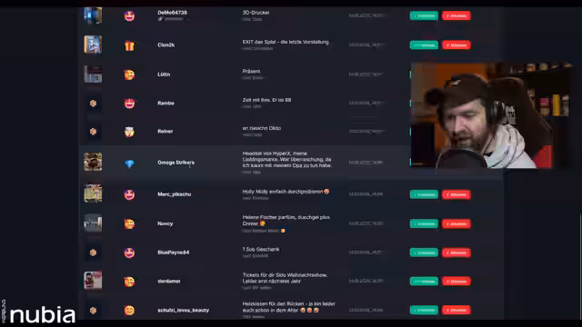 00:17:18Es folgen mehrere Hype Train Stufen (1-6) mit Sub-Geschenken und Bits. Besonders hervorgehoben werden Subs von 'Bobbeldoppel' und 'Beamter 10'. Die Subs werden live vorgelesen, und es wird auf die Besonderheit von Level 6 eingegangen. Die Stimmung ist fröhlich, mit ironischen Kommentaren zu Familienfeiern und dem Alleinsein an Heiligabend. Ein besonderes Highlight ist ein 20er-Sub-Geschenk von 'Nomadjan', das das System kurzzeitig überlastet.