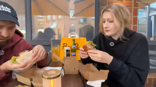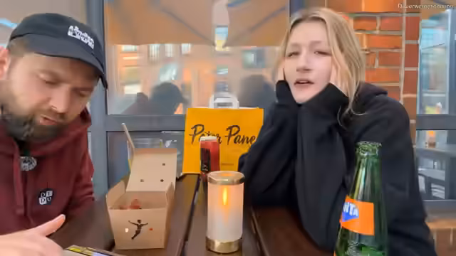02:40:53Nachdem seine Begleitung Annika eingetroffen ist, holen sie gemeinsam ihre Bestellung bei Peter Pane ab. Der Streamer filmt den Vorgang und präsentiert die bestellten Burger-Menüs. Anschließend erwähnt er seine weiteren Pläne für den Abend und die kommende Woche, darunter Streams am Donnerstag und Freitag sowie ein Flohmarkt-Stream mit seiner Begleitung. Er kündigt auch an, dass er am nächsten Tag bei einer Premiere in Köln sein wird.