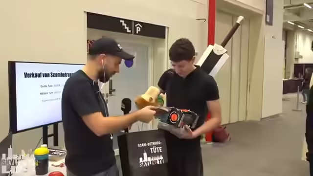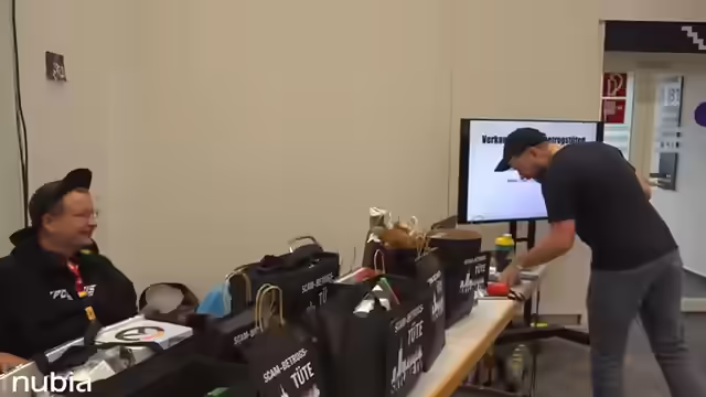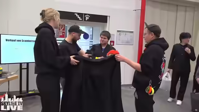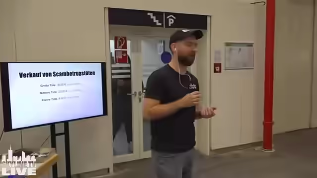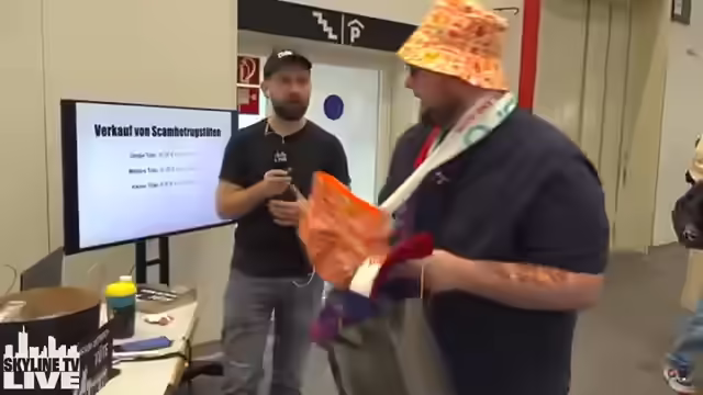 00:16:20Der Stand B1 Ausgang Nord, gleichzeitig Eingang Nord, ist auf der Polaris Messe eröffnet. Es gibt 'Scam-Betrugstüten' zu kaufen, gefüllt mit Erinnerungsstücken aus vergangenen Streams. Der Stand ist gut gelegen, mit mehr Licht als bei früheren Veranstaltungen und ausreichend Platz. Die Tüten sind nicht verschlossen, was im Chat diskutiert wird. Es wird überlegt, ob man sie zutackern oder zukleben sollte. Es gibt Überlegungen, durchsichtiges Klebeband zu holen, um die Tüten zu verschließen. Mitarbeiter sind anwesend, aber primär für die Beaufsichtigung des Laptops zuständig. Es wird eine neue Kamera benötigt, da die aktuelle nicht optimal ist. Es gibt eine App, die beim Verkauf helfen soll, aber es gibt noch Probleme mit dem Strichcode-Format. Kartenzahlung wird akzeptiert, was als unkompliziert dargestellt wird, im Gegensatz zu manchen Dönerläden. Der erste Kunde wird begrüßt und es wird über den Kauf einer '18-Plus-Tüte' gesprochen.