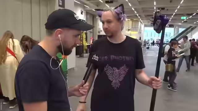 05:36:22Es wird eine "Gang" vorgestellt, die jedoch nicht wie erwartet mitmacht. Es wird ironisch über ein Holy-Sponsoring gesprochen, inklusive eines Rabattcodes. Ein Gast äußert seine Erwartungen an die Polaris, nämlich dass weniger Leute ihn von letztem Jahr kennen. Er findet die Convention größer als erwartet und lobt die Cosplay-Community. Es wird empfohlen, sich die Convention-Welt und Cosplay anzusehen. Der Streamer äußert den Wunsch, ein Labyrinth aus den vorhandenen Materialien zu bauen und Menschen darin nach einem Preis suchen zu lassen. Er plant, einen Clip für das nächste Jahr an das Polaris-Team zu schicken, um die Idee vorzustellen.