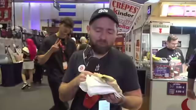 04:39:01Es wird ein seltsamer, kurzer Plastiktunnel auf dem Messegelände entdeckt, dessen Zweck unklar bleibt. Spekulationen reichen von einem Zeuchenschutztunnel bis zu einem Raucherbereich. Der Streamer kündigt kommende Streams an, darunter den Backstage-Podcast am Dienstag und möglicherweise Streams vom Bremer Freimarkt am Wochenende sowie von der Frankfurter Buchmesse am Sonntag. Es wird überlegt, welche ungewöhnlichen Zutaten man auf einen Crepe legen könnte. Zunächst werden deftige Optionen ausgeschlossen. Ideen wie Gummibärchen und Lakritz werden verworfen, da sie in Kombination mit dem Teig als unangenehm empfunden werden. Oreo wird in Betracht gezogen, aber es wird festgestellt, dass es diese bereits auf Crepes gibt. Der Streamer präsentiert eine teure Surprise-Bag für 300 Euro, die sieben Figuren und Gadgets enthält, aber er bemängelt, dass der Inhalt bereits gespoilert wird. Es wird die Idee einer eigenen, glitzernden 500-Euro-Scam-Bedrucktasche für das nächste Jahr entwickelt, die beim Öffnen ein Konfetti-Feuerwerk auslösen soll.