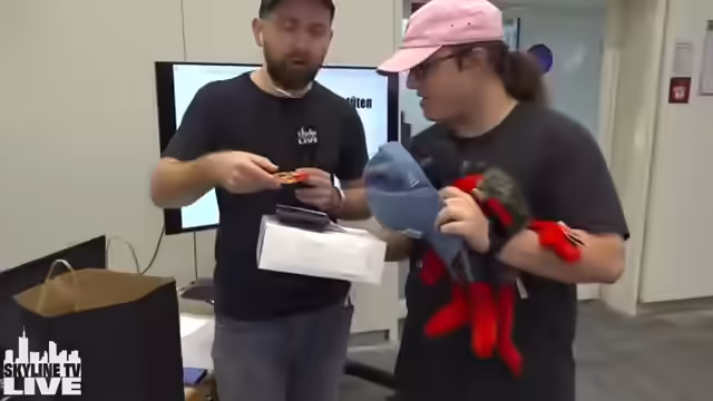 01:01:59Es beginnt mit einem Song vom Pokerabend in NRW, der nun weitergegeben wird. Eine exklusive Happy Slice Cap in Pink mit Produktionsdetails wird vorgestellt, gefolgt von einem dubiosen Objekt aus einem Retourenautomaten, dessen Zweck unklar bleibt. Spekulationen über seine Funktion, von Kopfhörern bis Nackenwärmer, werden angestellt. Ein Twitch-Partner Anstecker-Set und eine Holy-Backform für Kekse werden präsentiert, wobei die Mutter des Zuschauers möglicherweise Holy heißt und ihren Namen backen kann. Ein Papierflieger vom Reichsparteitagsgelände und ein Werk aus Mitleidskäufen, vermutlich Jinx, werden gezeigt. Abschließend gibt es verschiedene Broschen, darunter Pikachu, und die Artikel werden wieder in die Tüte gepackt. Es wird mit einem Happy Meal von McDonalds verglichen, aber mit dem Hinweis, dass es besser schmecken könnte. Es wird gerätselt, um welches Tier es sich bei dem Motiv handelt, bis der Chat Ameisenbär vorschlägt.