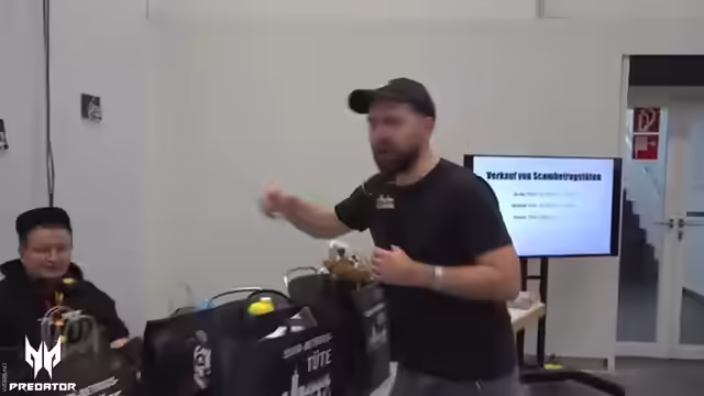 03:43:59Es wird darüber gesprochen, wie oft der Streamer mit Olli Schulz verwechselt wird, sowohl im Privatleben als auch im Kundenverkehr. Ein Besucher fragt nach dem Nickname des Streamers. Ein Foto von der Scan-Betrugstüte wird gemacht. Der Chat wird aufgefordert, den Spruch 'Real talk for real' zu wiederholen. Es wird über jahrelanges Sparen gesprochen und dass keine Tüte mehr vorhanden ist. Die Wartezeiten von bis zu zwei Stunden werden thematisiert. Die Idee eines Nummernsystems wie bei der Arbeitsagentur wird diskutiert, um die Wartezeiten zu organisieren. Die Programmierung eines solchen Systems mit Strichcode und Einspielern wird in Erwägung gezogen. Die Idee einer Katze, die mit einem Nummer-Zieh-Ding autonom durch die Hallen fährt und die Leute benachrichtigt, wird vorgestellt. Technische Details wie RFID-Chips, Messe-WLAN und Triangulation werden diskutiert, um die Katze zu steuern. Probleme wie das Aufhalten der Katze oder das Verlassen des Geländes werden angesprochen und Lösungen wie Bild-in-Bild-Übertragung und Sprachansagen werden vorgeschlagen. Es wird überlegt, ob man solche Katzen auf Tagesmiete bekommen kann und die Community wird um Hilfe gebeten. Die Idee wird als 'Next Level' bezeichnet und Prime Stuff dafür gefordert.