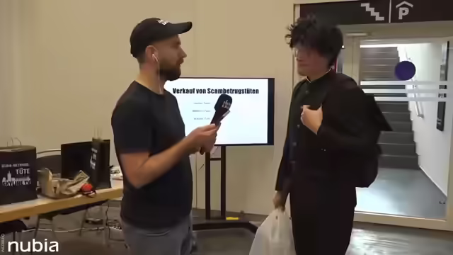 Interaktionen mit Zuschauern und Übergabe der Scambetrugs-Tüte