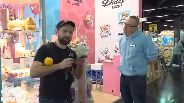 02:02:24Der Stream besucht den Stand der Diddl-Maus, wo eine große Wiederkehr der Figur gefeiert wird. Viele Messebesucher bestätigen den starken Retro-Hype, der auch andere Charaktere wie Labubu betrifft. Ein spontanes Gewinnspiel wird gestartet, bei dem ein Diddl-Koffer und weitere Gratisproben verlost werden. Die Moderation betont, dass Diddl-Maus-Produkte nur im stationären Handel erhältlich sind und ruft zur Unterstützung lokaler Fachhändler auf.