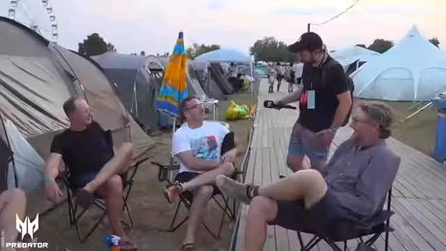 03:11:59Nach dem Wechsel trocknet der Streamer auf dem Festivalgelände und mischt sich in die Menge. Die Stimmung ist ausgelassen und die Hitze lässt die Badehosen der Festivalbesucher langsam trocknen. Er erinnert sich an die Zeit vor dem Internet, als man sich nur schwer mit Gleichgesinnten austauschen konnte und sich oft isolisiert fühlte. Diese Retro-Gedanken führen zu der Idee, zukünftig einen speziellen Retro-Stream zu veranstalten.