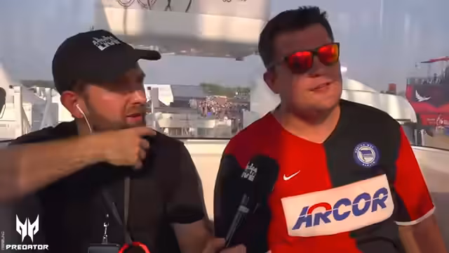 02:49:28Durch das spontane Springen in den See führt der Streamer ein improvisiertes Interview mit einem anderen Festivalbesucher namens Adam, der auf zwei Kanäles streamt. Er beschreibt das Springen als Festival-Springen und lobt die rücksichtsvolle Art des Gegenübers. Er nutzt die Gelegenheit, um erneut das Festival zu erwähnen, die Headliner zu preisen und die gute Stimmung zu betonen, und verspricht, den Spaß fortzusetzen.
