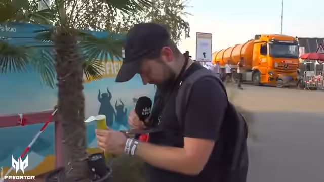 00:14:16Der Streamer beginnt den vom Highfield Festival mit einer Live-Anmeldung von einem benachbarten Feld aus, da die Hitze extrem hoch ist. Die Ankunft auf dem Festivalgelände war aufgrund von Schwierigkeiten bei der Parkplatzsuche verzögert. Die Akkreditierung wurde nicht am Gelände, sondern in einem weit entfernten, ausgestorbenen Einkaufszentrum abgeholt, was eine Reise von zusätzlichen 15-20 Minuten erforderte. Nach mehrmaligem Suchen und dem Finden des großen Schildes für den Presse-Parkplatz konnte der Streamer sein Ziel erreichen.