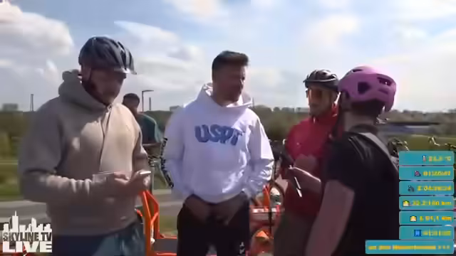 03:56:07Es wird über Sonnencreme gesprochen und die Notwendigkeit, sich vor der Sonne zu schützen, auch wenn es in Norddeutschland ist. Eine Sonnencremepause wird abgelehnt. Es wird über gefährliche Aktionen während der Fahrt gesprochen, wie das Fahren mit einer Hand. Es wird über Seitenstechen geklagt. Es wird das Kompetenzteam von Schradin erwähnt, welches zu Hause sitzt und per Stream together unterstützen soll. Es wird erklärt, wie die Zuschauerzahlen zusammengelegt werden können, um auf Twitch weiter oben zu sein. Es wird betont, dass die Zuschauer nicht vorbeikommen oder Fotos machen sollen, um die Tour nicht zu gefährden. Schradin wird ermahnt, nicht immer wieder nach hinten abzufallen. Es wird über den Geruch der Nordseeluft und die Rapsfelder gesprochen. Es wird die Hoffnung geäußert, Robben zu sehen. Es wird über das Alter von Schradin diskutiert und er wird aufgefordert, seinen Ausweis zu zeigen, was er jedoch ablehnt. Es wird über die Intimhygiene von Max gesprochen.
