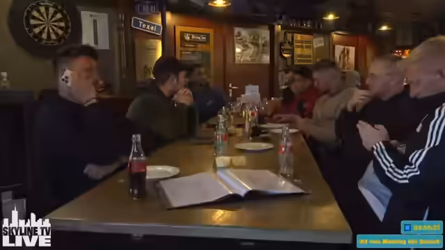 10:23:44Es beginnt eine ausführliche Diskussion über die Essensbestellung. Es werden verschiedene Schnitzelvarianten wie das 'crazy Schnitzel' mit Champignons, Union, Paprika und Crimesauce sowie Hähnchen Optionen in Betracht gezogen. Die Gruppe überlegt, ob Beilagen wie Salat und Pommes Frites dabei sein sollen. Es wird geklärt, was Max bestellt hat – Lassansnitzel mit gebackenen Champignons. Die Notwendigkeit von Energie für den langen Tag wird betont. Es gibt Verwirrung darüber, wer was bestellt und warum sich jemand zurücklehnen soll. Die Gruppe einigt sich darauf, Cheeseburger und Pulled Pork Burger zu bestellen. Es wird überlegt, ob man ein ganzes Hähnchen zusätzlich bestellen und teilen soll, eventuell auch mit Ronny und anderen. Die Qualität des Essens in dem Pub wird diskutiert, wobei die gute Dartscheibe als positives Zeichen gewertet wird. Chiel nimmt die Bestellung entgegen, was für Begeisterung sorgt. Es werden dreimal Chicken Sneasel bestellt und zwei halbe Hähnchen zum Teilen. Niki wird eingeladen, mitzuessen, und die Bestellung wird auf vier Personen und zwei halbe Hähnchen angepasst. Die Gruppe lehnt Sparrows für die Runde ab, da noch Vorspeisen vorhanden sind. Es wird überlegt, wie man aus 2,5 Hähnchen 4 machen kann, und schließlich werden drei halbe Hähnchen bestellt. Eine Vorspeise wurde bereits bestellt. Die ersten Teller mit Frikandel kommen an und werden verteilt. Es werden Toastie mit Tomatensuppe und Gründekroketten mit Brötchen bestellt. Achille wird für seinen Kellnerdienst gelobt. Es gibt Diskussionen über Senf und Mayonnaise. Die Gruppe bestellt ein halbes Hähnchen wieder ab und bestellt stattdessen Chicken Nuggets und Flammages. Das Essen wird als lecker und perfekt empfunden. Die Satai Sauce wird gelobt und als Erdnusssauce identifiziert. Max Schardin wird begrüßt. Das Essen wird als geschmacklich geil und sehr heiß beschrieben. Chicken Nuggets werden angeboten und als lecker empfunden. Die holländische Fritierkunst wird gelobt. Zabaris hat die Vorspeise verpasst, weil er lange auf der Toilette war. Es folgt eine Diskussion über Ritösenfett und die Angst, zu viel zu essen. Eine Frikadelle wird als holländische Bratwurst bezeichnet. Cooler Zero wird getrunken. Es wird über die Schärfe der Meatballs diskutiert. Alkoholfreies Weizen wird bestellt. Es wird über Senf diskutiert und ob er zu bitter ist. Die Vorspeise wird gelobt und Fihel für seine Organisation gelobt.