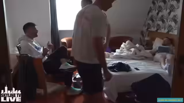13:57:25Die Gruppe erreicht das Hotelzimmer. Es wird festgestellt, dass jemand alleine schlafen muss, da nicht alle auf die Couch passen. Es wird ein kaputtes Bett entdeckt. Es wird eine Regel für die Klimaanlage aufgestellt. Schradin erzählt von seinen Erlebnissen bei der Suche nach dem Streamingzimmer. Er fand Zabex vor dem Zimmer auf dem Boden liegend vor. Die Klimaanlage ist auf 3 Grad eingestellt. Es wird beschlossen, die Klimaanlage auf 16 Grad zu lassen. Es wird darüber diskutiert, wer auf welcher Toilette sein Geschäft verrichtet. Es wird über die Zerstörung der Toilette in der Hotellobby gesprochen. Es wird über Diskretion und Respekt auf der Toilette gesprochen. Es wird festgestellt, dass es fette Pfützen gibt und der Föhn unbrauchbar ist. Es wird diskutiert, ob der Föhn benutzt werden soll. Es wird festgestellt, dass es das erste Mal ist, dass Micky nicht im Hotelzimmer ist und trotzdem der Föhn läuft.