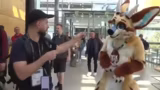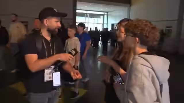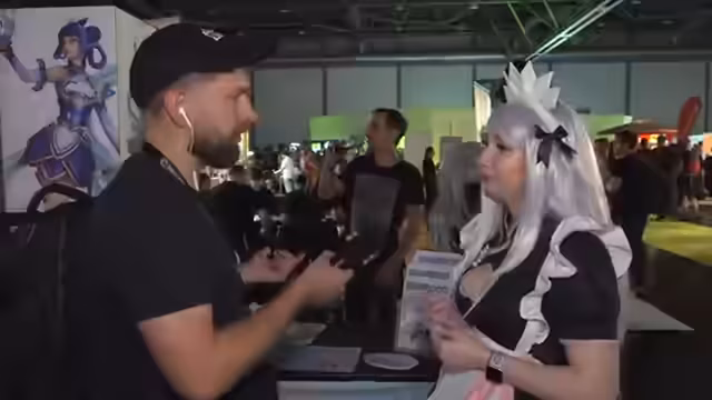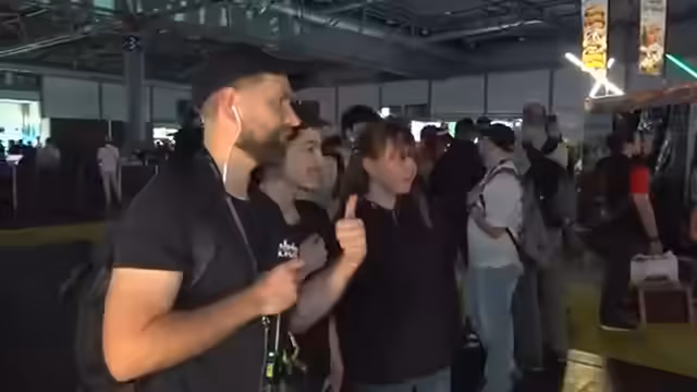 02:36:35Der Streamer führt Interviews mit verschiedenen Besuchern der Messe. Einer der Cosplayer stellt sich als Rio Hayabusa aus Ninja Gaiden vor, nicht wie fälschlicherweise angenommen Aladdin. Der Streamer erkundigt sich auch nach deren Lieblingsvideospiele und anderen persönlichen Interessen. Dabei zeigt er Interesse an den verschiedenen Spielen und Charakteren, die die Fans darstellen und stellt Fragen, um mehr über deren Leidenschaft zu erfahren.