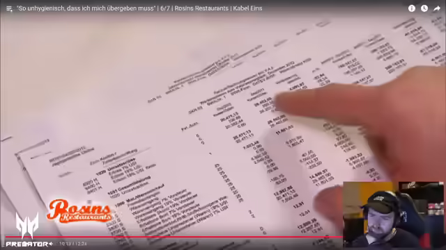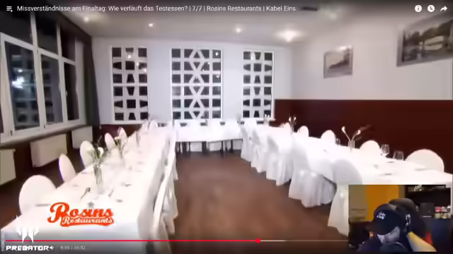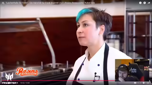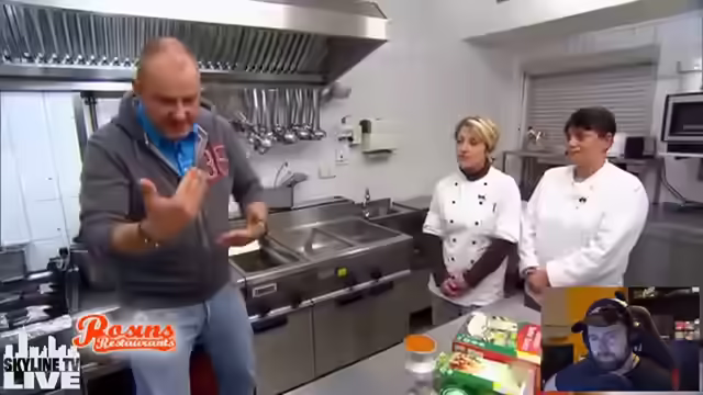 02:38:10Es wird angekündigt, dass in zwei Stunden 15 Testesser und drei Kinder kommen werden, um die Speisen zu bewerten. Ein Drei-Gänge-Menü (Vorspeise, Hauptgang, Dessert) soll zubereitet werden, um den Alltag in der Küche zu zeigen. Die Chefin und die Köchin besprechen das Menü. Als Vorspeise wird Wildsuppe, als Hauptgang Kartoffelklöße mit Rotkohl und Wildgulasch und als Dessert Kirschgrütze mit Mousse geplant. Der Streamer kommentiert das Outfit der Köchin und entdeckt einen Fertigprodukte-Bunker mit über 70 Flaschen Ketchup und Worcestersauce. Die Vorstellung, dass alles frisch zubereitet wird, wird ironisch hinterfragt. Es wird beobachtet, wie die Aushilfe Annette den fertigen Kloßteig aus der Verpackung nimmt und die Chefin Sina die Zubereitung der Sahne durch Köchin Kassandra kritisiert und kurzerhand selbst übernimmt. Die Elektrik in der Küche wird als bedenklich eingestuft. Die Speisekarte wird als riesig und unübersichtlich beschrieben, mit Gerichten, die seit Ewigkeiten nicht mehr gegessen wurden. Die Anzahl der Gerichte erklärt, warum so viele Köche in der Küche sind. Der Umgang mit Fertigteig wird kommentiert und die Verwendung von Fertigprodukten kritisiert, sogar das Eigelb kommt aus dem Tetra Pak.