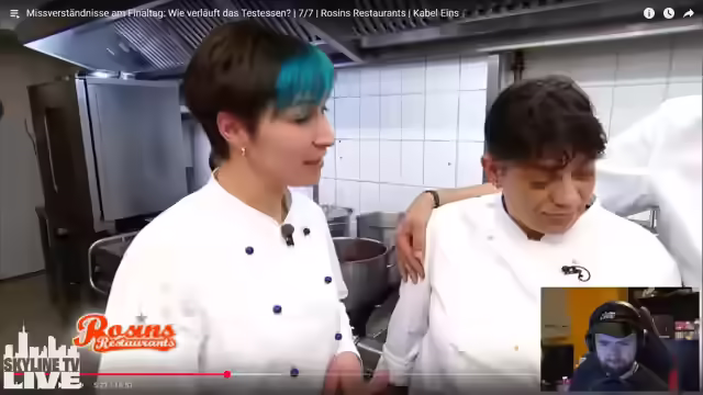 02:49:55Köchin Kassandra bereitet den Nachtisch zu, indem sie fertige Sahne mit geschmolzener Schokolade vermengt, was vom Sternekoch kritisiert wird. Er demonstriert die korrekte Zubereitung von Mousse au Chocolat mit Eigelb und Wasserbad. Der Streamer kommentiert ironisch, dass die Rezepte für die Fertigprodukte auf Kabel1.de verfügbar sind. Die Qualität der Zutaten wird bemängelt und die Tatsache, dass sie aus dem Tetra Pak kommen. Die Chefin Sina hat einen eigenen Kopf und setzt ihre Vorstellungen durch, was zu Diskussionen führt. Der Sternekoch vergleicht die Situation mit einem Kindergarten und fragt sich, ob er selbst überlegt, was er sagt. Es wird ein Halloween-Event in einem Freizeitpark angekündigt, das im Oktober stattfinden soll. Der VIP-Bereich des Streams wird beworben, der Zugriff auf alle VODs seit 2017 bietet, inklusive der Venus-Veranstaltung. Die MixClip Premiere wird erwähnt und die Notwendigkeit, die Seite zu aktualisieren. Es wird über die Angst gesprochen, sich gegenüber Sina zu äußern, da sie einen starken Charakter hat. Die Venus-Veranstaltung wird als lukratiiv dargestellt. Frank Rosin möchte wissen, wo der Schuh bei den Frauen drückt und beginnt ein offenes Gespräch.