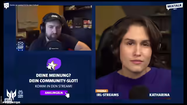 00:37:29Der ARD Mixtalk zum Thema IRL beginnt und die Zuschauer werden herzlich willkommen geheißen. Es wird diskutiert, warum Menschen IRL-Streams schauen, in denen andere auf der Straße herumlaufen oder Kaffee trinken gehen. Danny schreibt, dass IRL die Welt aus verschiedenen Perspektiven zeigt. Es wird die Frage aufgeworfen, wie echt IRL ist und an welchen Stellen es geplant ist. Mad Max schreibt, dass neue Einblicke in neue Orte nice sind. Adonaut sagt, dass IRL die Welt draußen zeigt, die er selbst nicht mehr erleben kann. Simon sagt, dass IRL viele Menschen zusammenbringt. Disco Klaus sagt, er liebt es, den Fortschritt von Streamern mitzuerleben. Maya sagt, draußen sein, aber zu Hause. Es werden verschiedene Aspekte genannt, warum Menschen IRL-Streams schauen, wie banale Dinge oder die Anziehungskraft, die von iShow Speed ausgeht. Die Lin schreibt, dass sie schöne Bilder von Orten sehen kann, wo sie vermutlich nie hinkommen wird. Es wird über Unterhaltung ohne Netz und doppelten Boden gesprochen und die Entwicklung von IRL soll betrachtet werden. Als erster Gast wird Skyline begrüßt.