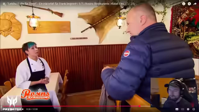 02:27:14Es wird überlegt, ein Parodie-Format über Restaurants zu erstellen, in dem absurde Situationen dargestellt werden. Die aktuelle Situation eines Restaurants wird als schwierig beschrieben, mit wenigen Gästen und finanziellen Problemen. Die äußere Erscheinung, wie Frisur und Lidschatten, wird positiv hervorgehoben, während die Gaststätte selbst als echter Härtefall, selbst für Frank Rosin, dargestellt wird. Es wird betont, dass Stärke nicht nur in harter Arbeit, sondern auch in einer klaren Strategie und einem Konzept liegt. Der Zustand des Speiseraums wird als abschreckend beschrieben, die Dekoration als veraltet und kurios. Die lange Geschichte der Gaststätte seit 1974 und die Übernahme durch die jetzige Besitzerin von ihrem Mann werden erwähnt. Die Dekoration wird als Mischung aus Jagdszenario und Trödelmarkt beschrieben, wobei insbesondere die älteren Gäste die Einrichtung schätzen, während Kinder eher negativ darauf reagieren. Trotzdem werden die Dekorationen nicht entfernt. Es wird erwähnt, dass weniger Gäste kommen und die Qualität des Essens bemängelt wird, insbesondere die Zähigkeit von Wildgulasch und Rouladen. Es wird über eine bevorstehende Feierlichkeit gesprochen, bei der Catering angeboten wird, und die Angst, dass das Essen nicht gut ankommt. Die Schwierigkeit, sich auf Mitarbeiter zu verlassen, wird thematisiert.