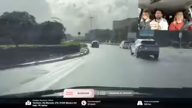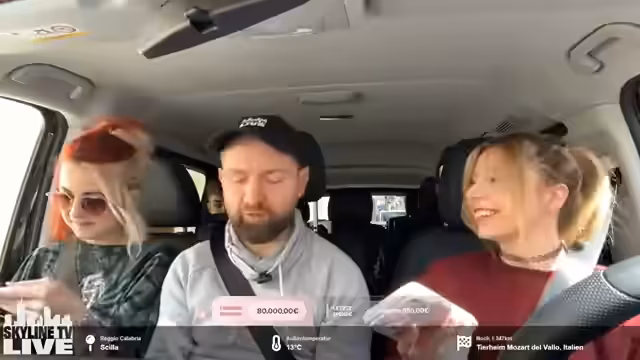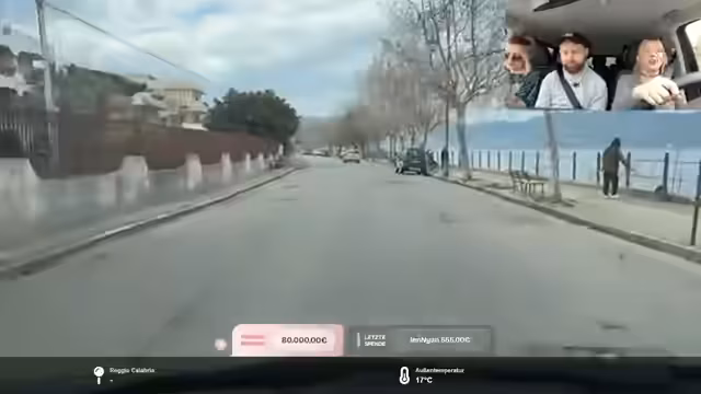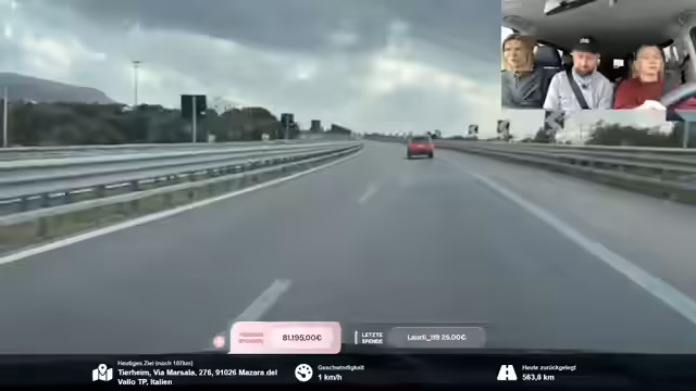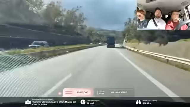 00:17:44Das Hauptziel des heutigen Tages ist das Tierheim. Auf dem Weg dorthin planen sie, die Fähre zu nehmen, um sizilianischen Boden zu betreten. Sie fahren mit einem Mercedes Benz Vito, und der Streamer zeigt das erste Mal im Stream Sizilien. Das Wetter ist bei 17 Grad und leicht bewölkt, ohne Regen was sehr erfreulich ist. Die Fähre wird als groß beschrieben, sodass die Fahrt entspannt sein und nicht schaukeln sollte, besonders mit einem leeren Magen, was der Streamer als Vorteil gegen Seekrankheit ansieht.
