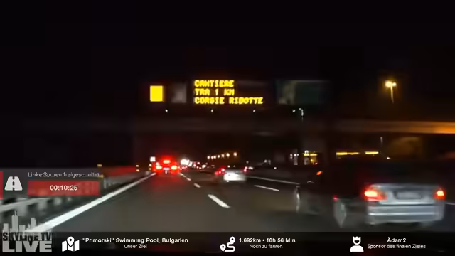 Die Route des fahrerlosen Roadtrips wurde durch eine Abstimmung geändert. Statt Palermo ist nun Bulgarien das Ziel. Das bedeutet eine komplette Neuplanung der Route und der Zeit. Die Fahrtroute durch Europa wurde angepasst. Das Projekt bleibt bis Sonntagabend aktiv. Die Ankunft am Montag wird angestrebt.