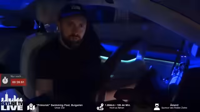 04:13:50Das Navi-Ziel wurde erneut, und diesmal radikal, von einem Nutzer namens EDAM 2 auf einen Strand am Schwarzen Meer in Bulgarien geändert. Dies bedeutete eine Umkehrung der gesamten Route von ca. 1500 Kilometern. Im Chat wurde intensiv über die Regeln und die möglichen Konsequenzen diskutiert. Der Streamer erklärte, dass ein Soll-Ziel bis Sonntagabend zu erreichen sei. Wenn das Ziel jedoch nicht erreichbar ist, erliegen beide Parteien einer vertraglichen Vereinbarung. Dabei sei er verpflichtet, in Richtung Ziel zu fahren, könne jedoch in Absprache mit dem Höchstbietenden mehr Zwischenstops einlegen und das Ziel später separat ansteuern.