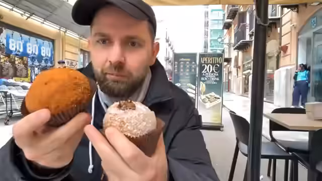 01:29:49Es wird entschieden, sowohl die Karne (mit Hackfleischfüllung) als auch eine Nutella-Variante zu probieren. Beim Genuss der Karne wird der Geschmack als lecker beschrieben, wobei er als 'Bolognese in Reisform' imitiert wird. Der Streamer gibt eine Empfehlung für das Palermo Store-Café, obwohl es eine kleine Taubenplage gibt. Die Portionen werden als 'nahrhafte Bombe' und für den Preis von 4 Euro als sehr gut empfunden, wobei besonders der Reis als feucht gelobt wird.
