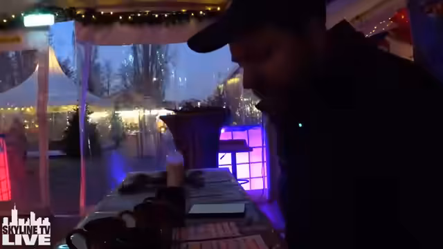 00:23:50Nach seiner Rückkehr im Geschäft erreicht der Streamer das Glühweinfestival. Er war anfangs irritiert, da es sich nicht um einzelne Stände, sondern um ein großes Zelt handelt. Zu seiner Überraschung ist das Festival jedoch noch sehr leer und bietet viel Platz und eine entspannte Atmosphäre. Dies steht im starken Kontrast zu überfüllten Weihnachtsmärkten in Innenstädten. Der Streamer beginnt nun damit, mit den wenigen anwesenden Gästen zu interagieren und plant, verschiedene Glühweinsorten zu probieren.