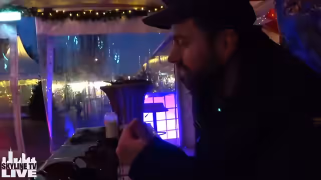00:43:10Der Streamer beschließt, gleich fünf verschiedene Glühweinsorten zu probieren, um eine abwechslungsreiche Auswahl für das Publikum zu präsentieren. Nachdem er die Nummern der Getränke (4, 15, 20, 21 und 18) festgelegt hat, bestellt er diese am Stand. Seine erste Kostprobe ist der 'Bärenblut' (Nummer 4), ein feiner Glühwein aus Obst und Beeren mit 10% Alkohol. Er ist überrascht, wie schmackhaft und nahezu unbemerkbar der Alkoholgehalt ist, und befürchtet, dass die Getränke gefährlich leicht trinkbar sind.
