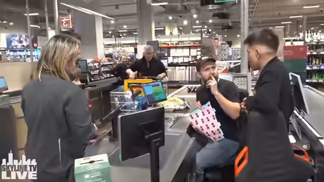 00:34:20Ein zentrales Vorhaben des Streams ist die Übernahme einer Kasse. Der Streamer will echte Kunden bedienen, betont aber, dass er wahrscheinlich sehr langsam sein werde und dabei auf die Hilfe eines Mitarbeiters angewiesen sein wird. Er möchte dabei versuchen, mit den Kunden ins Gespräch zu kommen, und rät sich selbst, sich nicht zu verplappern. Geplant ist dieses Vorhaben für später im Stream, nachdem er noch einige weitere Abteilungen wie die Tiefkühlabteilung erkundet hat.