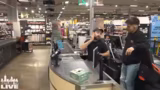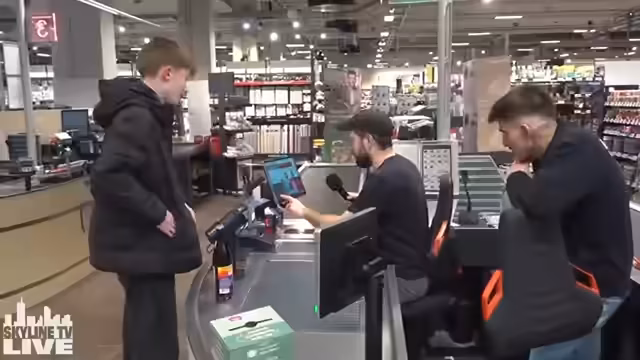00:56:12Der Streamer nimmt nun erstmals Platz an einer echten Kasse. Er betont die Ernsthaftigkeit der Situation, da er für jede Fehlrechnung haftet. Sein erster Kunde wartet bereits. Zusammen mit einem helfenden Mitarbeiter, der ihm zur Seite steht, beginnt der Versuch, den ersten Kunden effizient und korrekt abzurechnen. Die Tatsache, dass das Ganze ein Stream ist, wird dem Kunden vorab mitgeteilt, um einen reibungslosen Ablauf zu gewährleisten.