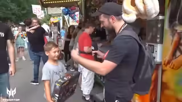 04:24:12Auf der Suche nach einem Greifautomaten werden neue Stände erkundet und es gibt eine Verwechslung zwischen einem Breakdancer und einer Berg- und Talbahnfahrt. Der Streamer findet Olaf Bibelix wieder und unterhält sich mit ihm. Olaf arbeitet als Schausteller und auch sein Bruder streamt.