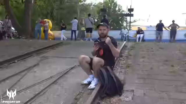 03:06:39Beim Überqueren der Brücke stellt der Streamer spontan eine fiktive Kofferrutschen-Wettbewerbsidee vor. Ein junger Mann wird identifiziert und der Streamer erkennt, dass es sich um einen Fan handelt, den er bereits früher bei GameStorm in Köln 2022 getroffen hat. Dieser ist extra für ein Foto zu dem Treffen gerannt, was für eine spontane und herzliche Begegnung sorgt. Der Streamer zeigt sich beeindruckt von der Treue und dem Engagement seines Zuschauers.