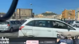 00:33:13Nachdem die Gruppe mit dem gemieteten Mercedes von Europcar losfährt, stellt sich schnell heraus, dass die Navigation (CarPlay) nicht ohne eine separate Zahlung von 366 Euro freigeschaltet werden kann, was auf ein Buchungsproblem beim Vermieter zurückzuführen ist. Stattdessen nutzen sie eine provisorische Halterung für die Kamera, die für 20 Euro erworben wurde, und versuchen die Route mit einer Karte fortzuführen. Während der Fahrt durch das chaotische neapolitanische Verkehrsgeschehen, bei dem niemand Fahrregeln zu beachten scheint, führt ein Missverständnis dazu, dass sie in eine falsche Richtung fahren und den Medienmarkt verpassen, wo sie eigentlich eine bessere Halterung kaufen wollten. Die Gruppe entscheidet daraufhin, die geplante Shopping-Tour abzubrechen und stattdessen direkt die Route fortzusetzen, um Zeit zu gewinnen.