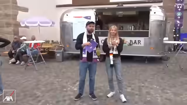 02:47:20Nach dem Museum wird die Fanzone aufgesucht, um die Atmosphäre vor dem Spiel einzufangen. Es werden spontane Interviews mit Fans geführt, die von der Arbeit oder dem Einkaufen kommen und sich vom Stream überrascht zeigen. Gleichzeitig wird ein Giveaway veranstaltet, bei dem Fans durch einfache Fußball- und Allgemeinwissen-Fragen offizielle EM-Schale gewinnen können.