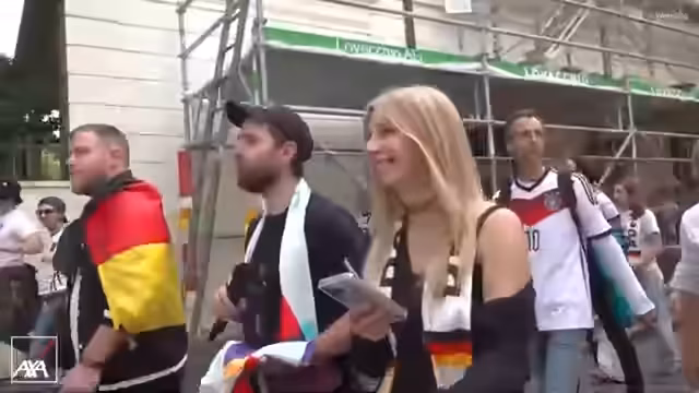 00:15:05Der Stream beginnt in der Innenstadt von Basel, wo der offizielle Fanmarsch der deutschen Nationalmannschaft stattfindet. Es ist eine deutlich größere Menge und eine andere Stimmung als am Vortag, was an der hohen Anzahl an deutschen Fans liegt. Der Marsch ist bereits in vollem Gange, die Teilnehmer Deutschland-Fragen schwingen und laufend Rufe wie 'Deutschland' erschallen. Eine Kapelle sorgt für musikalische Untermalung, während das Fernsehteam mitläuft, um die Atmosphäre einzufangen.