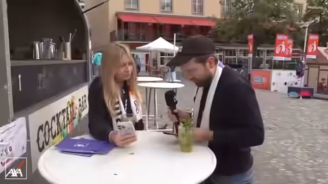 00:30:01Während des Marsches werden verschiedene Personen angesprochen und kurze Interviews geführt. So trifft man auf Fans aus Deutschland, Frankfurt und Berlin, die in Basel sind. Ein großes Highlight ist die Begegnung mit Simon Gose, bekannt aus 'Comedy Street', der für ein Interview angehalten wird. Des Weiteren werden auch freiwillige Helfer und Fans befragt, um deren Eindrücke und Erwartungen an das Spiel zu erfahren.