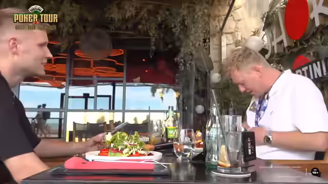 02:12:37Nach dem Vorfall im Restaurant und einer Essenspause bereiten sich die Streamer auf das bevorstehende Pokerturnier vor. Aufgrund des verschmutzten Oberteils wird ein Kleidungswechsel für den Streamer notwendig, um für das Event angemessen gekleidet zu sein. Sie planen, sich im Apartment umzuziehen und gleichzeitig das beschädigte Kabel der Kamera auszutauschen, um die Streamqualität für die restliche Zeit zu sichern.