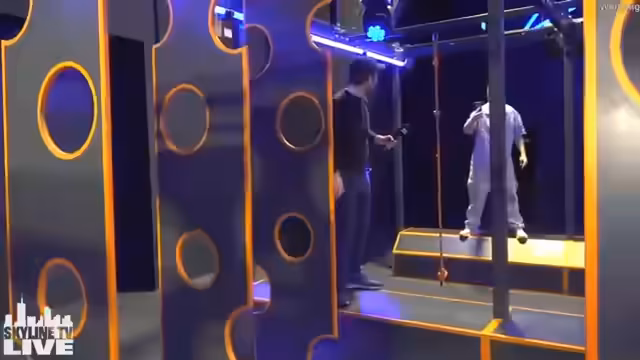 01:00:06Bei der Durchführung der Übung müssen sich die Teilnehmer einer Hangelstange bedienen, wobei sie auf Böden und Rutschen achten müssen. Der Streamer gibt Anweisungen, wie die Handgriffe erfolgen sollen, und filmt den Vorgang. Es wird die Gefahr von Verletzungen angesprochen und die Bewegungen werden mehrfach wiederholt, um verschiedene Aufnahmen für den späteren Schnitt zu erhalten.